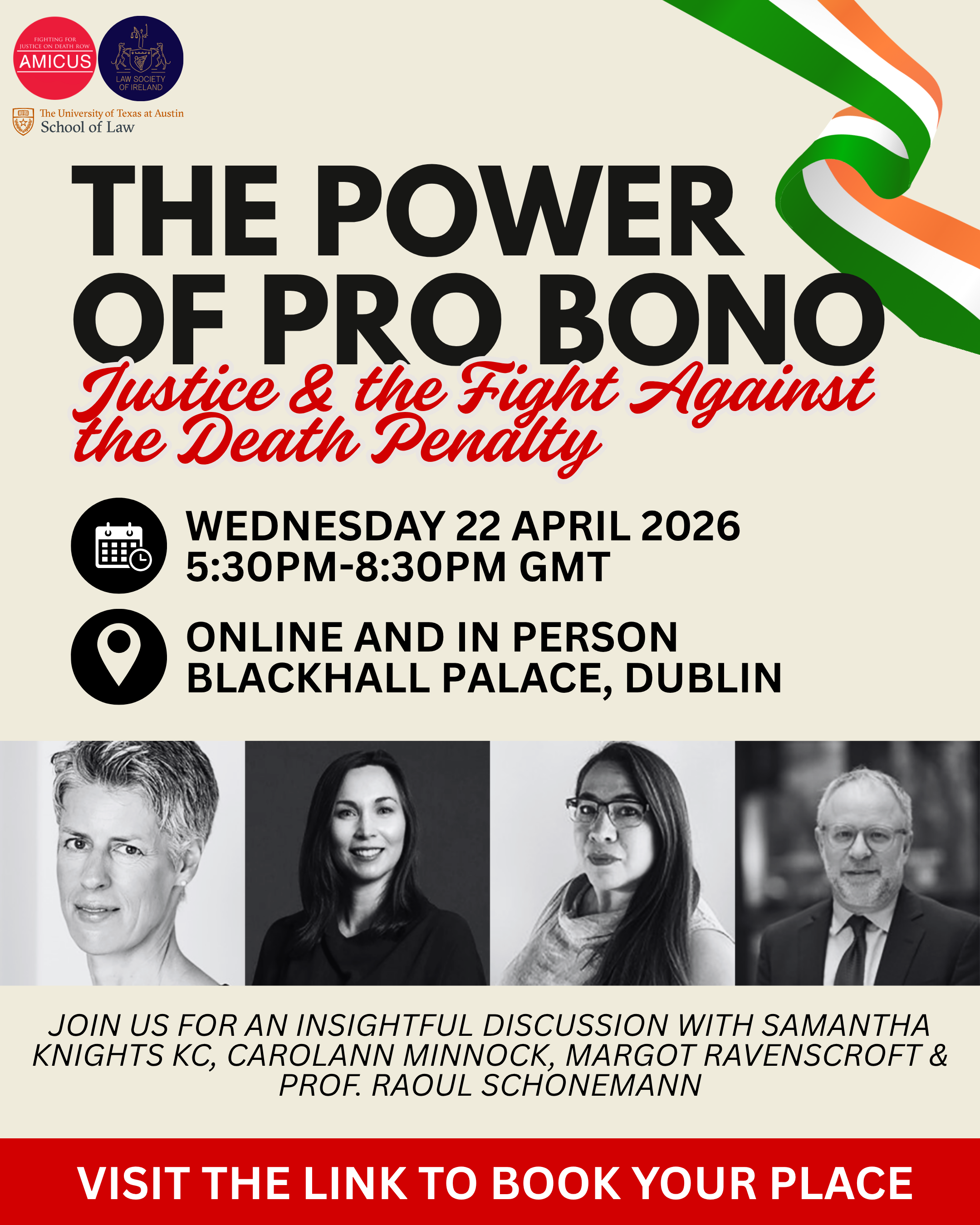 In collaboration with the Law Society of Ireland, we will be in Dublin for an insightful discussion on the significance of pro bono work and issues within the US death penalty system. Our panel includes: